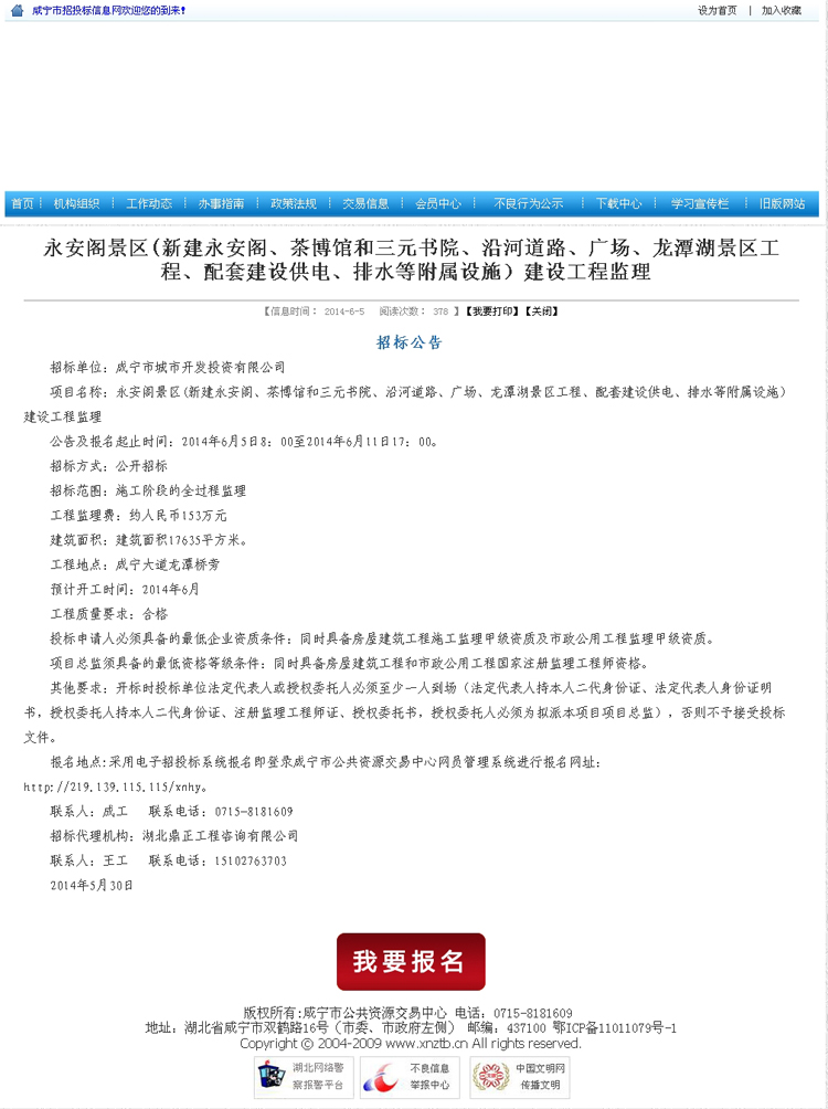 永安閣景區(qū)(新建永安閣、茶博館和三元書院、沿河道路、廣場、龍?zhí)逗皡^(qū)工程、配套建設供電、排水等附屬設施)建設工程監(jiān)理