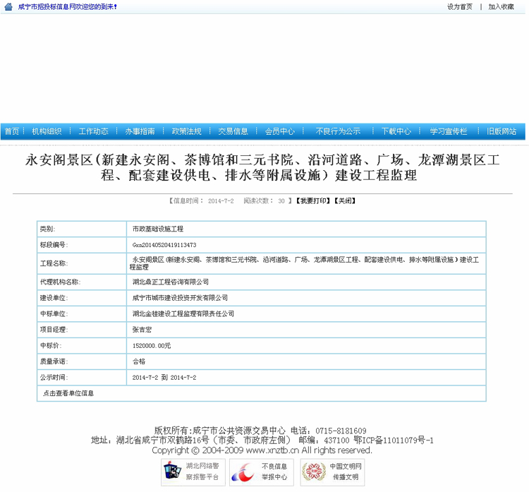 永安閣景區(qū)(新建永安閣、茶博館和三元書院、沿河道路、廣場、龍?zhí)逗皡^(qū)工程、配套建設供電、排水等附屬設施)建設工程監(jiān)理