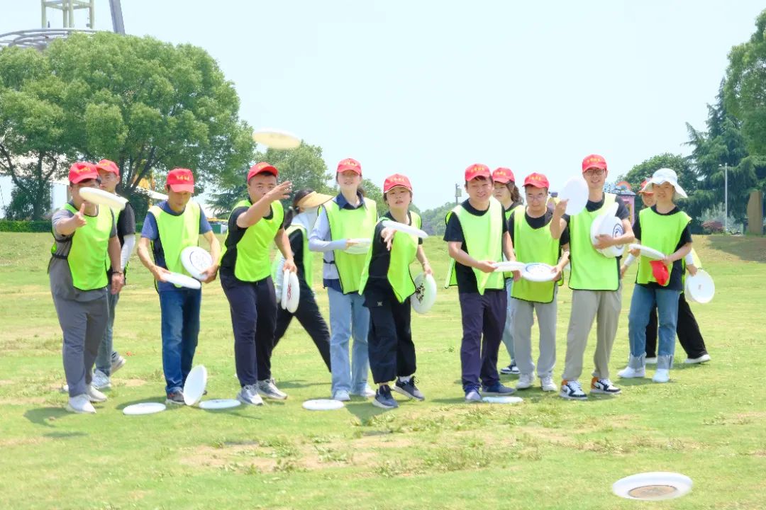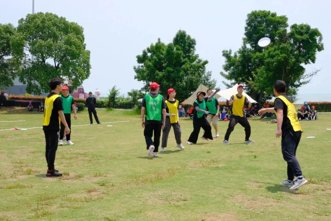 在教練的帶領(lǐng)下,大家來(lái)到戶外場(chǎng)地開(kāi)始實(shí)地開(kāi)展飛盤(pán)競(jìng)賽。飛盤(pán)練習(xí)場(chǎng)上,有迅速上手并漸入佳境的小伙伴,有互相鼓勵(lì)對(duì)方說(shuō)“沒(méi)關(guān)系,再試一次” 的組隊(duì)搭檔,也有時(shí)不時(shí)傳來(lái)歡聲笑語(yǔ)的同事