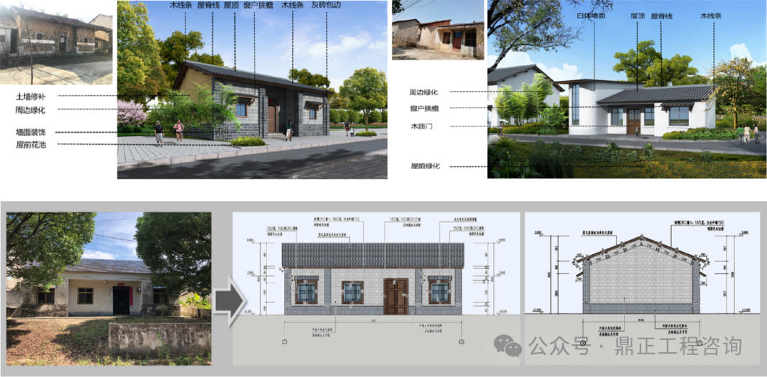 在建筑美化方面,通過建筑整體色彩協(xié)調(diào)、立面美化、增加裝飾、宅前屋后綠化等措施,實現(xiàn)對建筑的整改。其中對于歷史建筑風(fēng)貌整治,要在不改變歷史建筑原狀的原則下,對民居進(jìn)行部分修繕。同時整治歷史建筑的周圍環(huán)境,提升整體環(huán)境質(zhì)量。