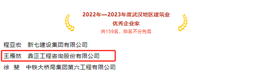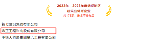 11月21日,武漢建筑業(yè)協(xié)會正式公布“2023年度武漢市最具成長性民營建筑企業(yè)”、“2022-2023年度武漢地區(qū)建筑業(yè)優(yōu)秀企業(yè)、優(yōu)秀企業(yè)家、優(yōu)秀總工程師、優(yōu)秀項(xiàng)目經(jīng)理”兩項(xiàng)評選結(jié)果,鼎正連續(xù)上榜,斬獲多項(xiàng)行業(yè)榮譽(yù)!