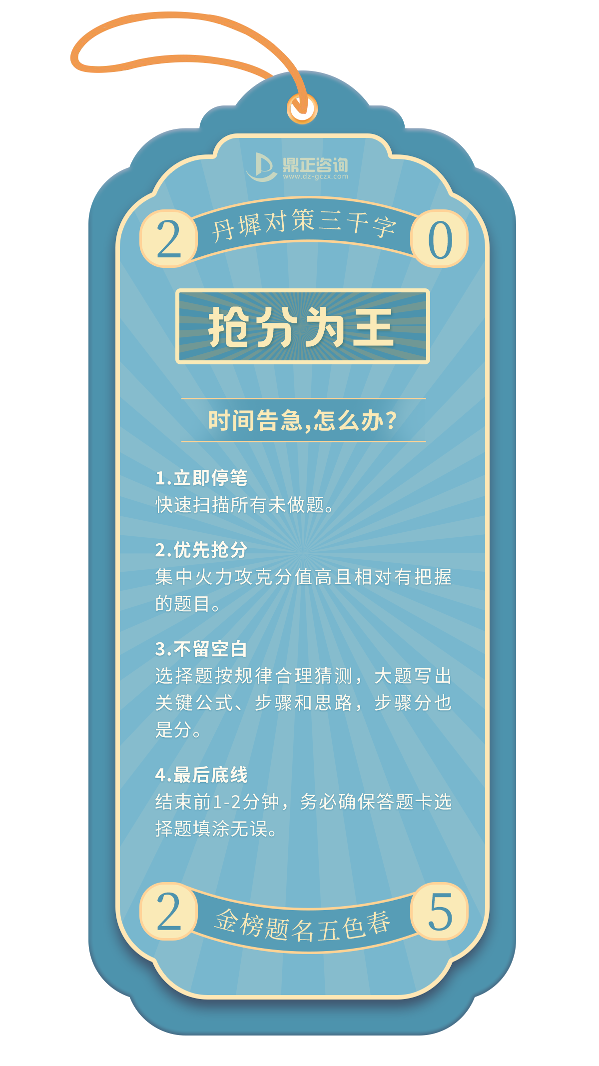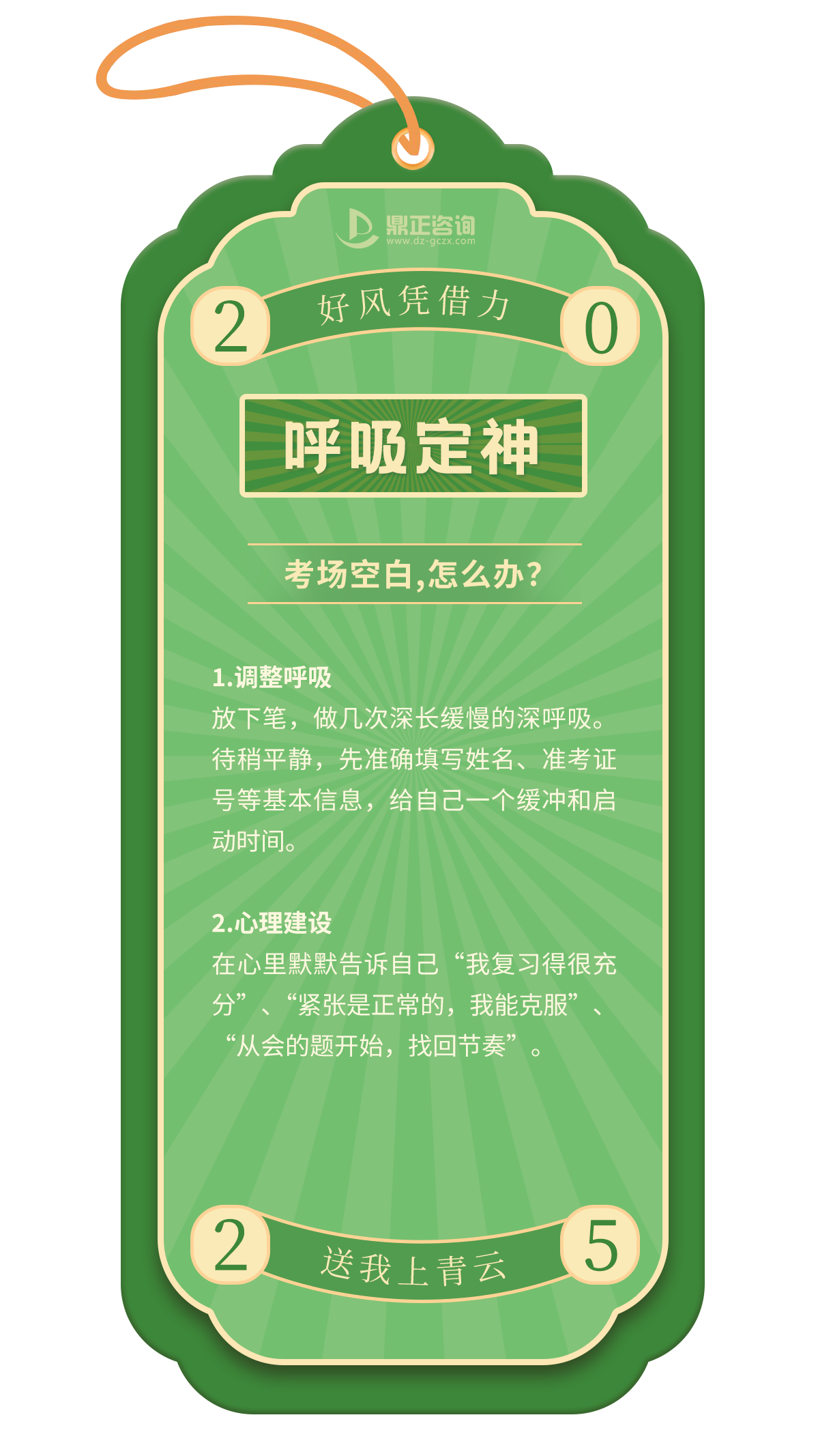 一年一度的高考即將拉開帷幕,全國(guó)1335萬學(xué)子,即將統(tǒng)一奔赴人生的重要考場(chǎng),十年寒窗磨一劍,只為能夠在這一次迎接光明的未來!決戰(zhàn)時(shí)刻,除了扎實(shí)的知識(shí),從容應(yīng)對(duì)考場(chǎng)內(nèi)外的“小意外”同樣關(guān)鍵。今天,鼎正人特別為莘莘學(xué)子準(zhǔn)備了這份「高考應(yīng)急錦囊」,匯集常見突發(fā)狀況的實(shí)用應(yīng)對(duì)策略,助大家穩(wěn)住心態(tài),全力發(fā)揮,讓每一滴汗水都不負(fù)期待!