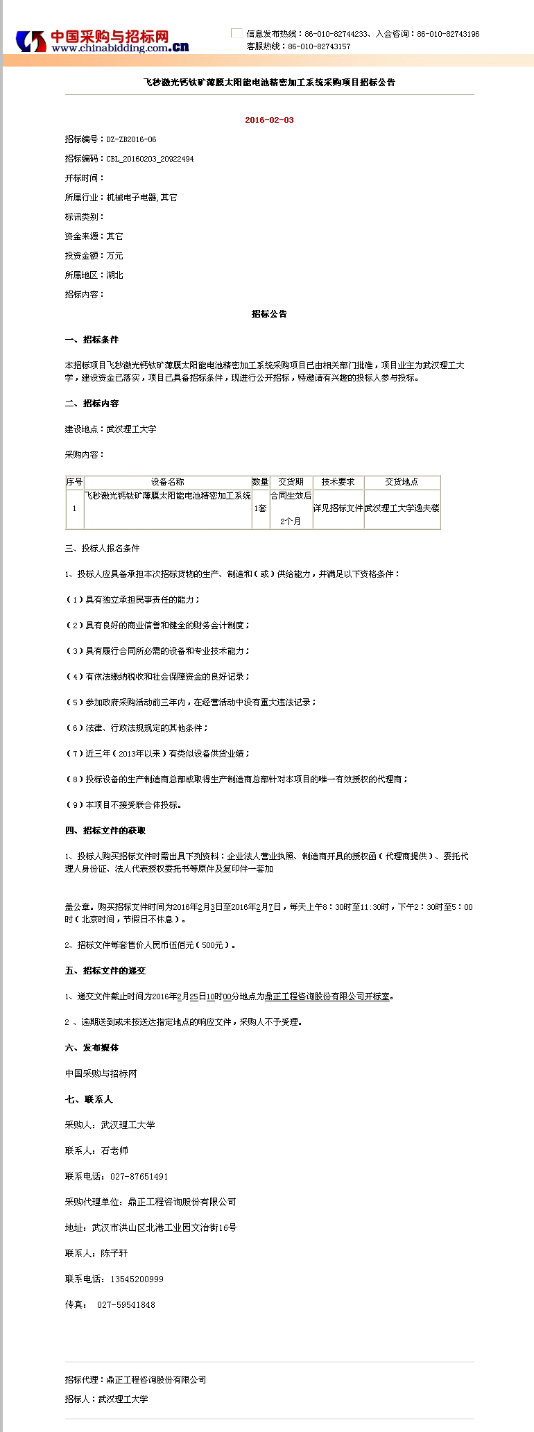 飛秒激光鈣鈦礦薄膜太陽(yáng)能電池精密加工系統(tǒng)采購(gòu)項(xiàng)目招標(biāo)公告